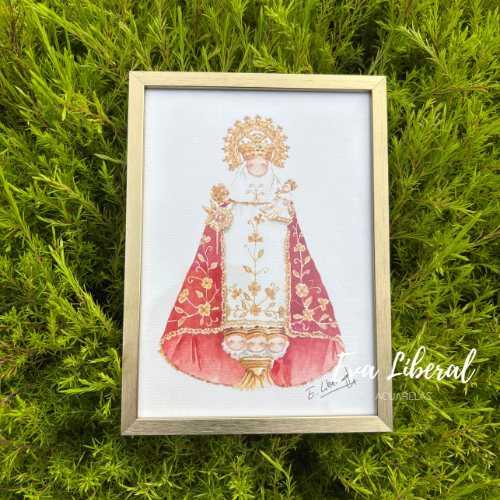 El papel utilizado es precioso, texturizado de algodón, y la impresión es de muy alta calidad para que casi sea imposible distinguir la acuarela original de la lámina. Hemos cuidado cada detalle para que nuestra Virgencita de Covadonga, por la que tenemos debilidad, sea el regalo perfecto para comuniones, bautizos y ocasiones especiales, y es que nuestra Santina con su mantón rojo es única para protegernos y cuidarnos.
